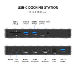 Colorii CD101,13-in-1 Docking Station for MacBook M1/M2/Windows, DisplayLink6950 Triple Monitor (2X HDMI 4K 1x DisplayPort), 100W PD Charge, 2.5Gbps Ethernet, 10Gbps USB Ports, Card Readers, 3.5mm Audio