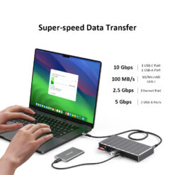 • SUPER-SPEED DOCKING STATION – features 100W PD charging and 2.5Gbps Ethernet RJ45 for laptop, USB 3.2 Type-C port up to 10Gbps, USB 3.0 Type-A port up to 5Gbps and SD/Micro SD card readers up to 104MB/s for quick access to essential peripherals.