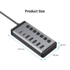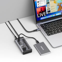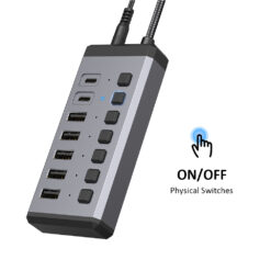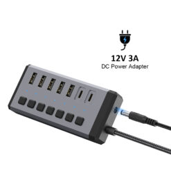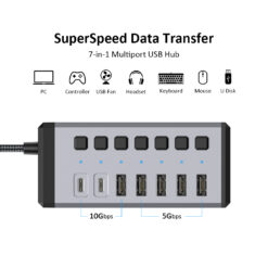 Colorii CP07A, 7-Port with 2 USB-C 10Gbps, 1 USB-A 10Gbps, 4 USB-A 3.0, Aluminum Multiport USB Expander with 12V 3A Power Adapter 36W, Support Data & Charging (NOT Support Video)