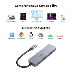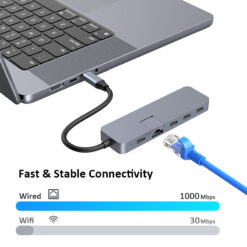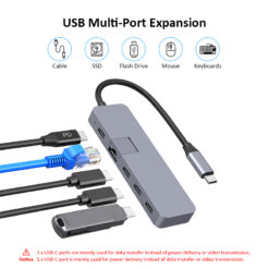 Colorii CW21, 5-in-1 Adapter, USB-C 5Gbps, Gigabit Lan port, USB-C PD charging up to 100W.