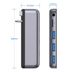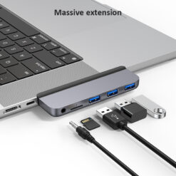 Colorii DC8, 5-in-1 Adapter, USB-A 5Gbps, micro Card Readers 100MB/s,earphone jack Compatible with Macbook Pro 2021 and newer.